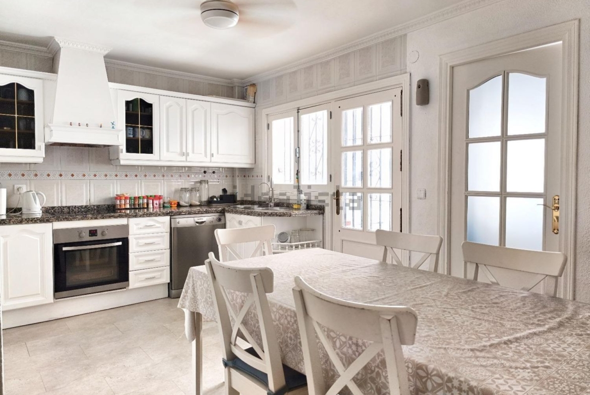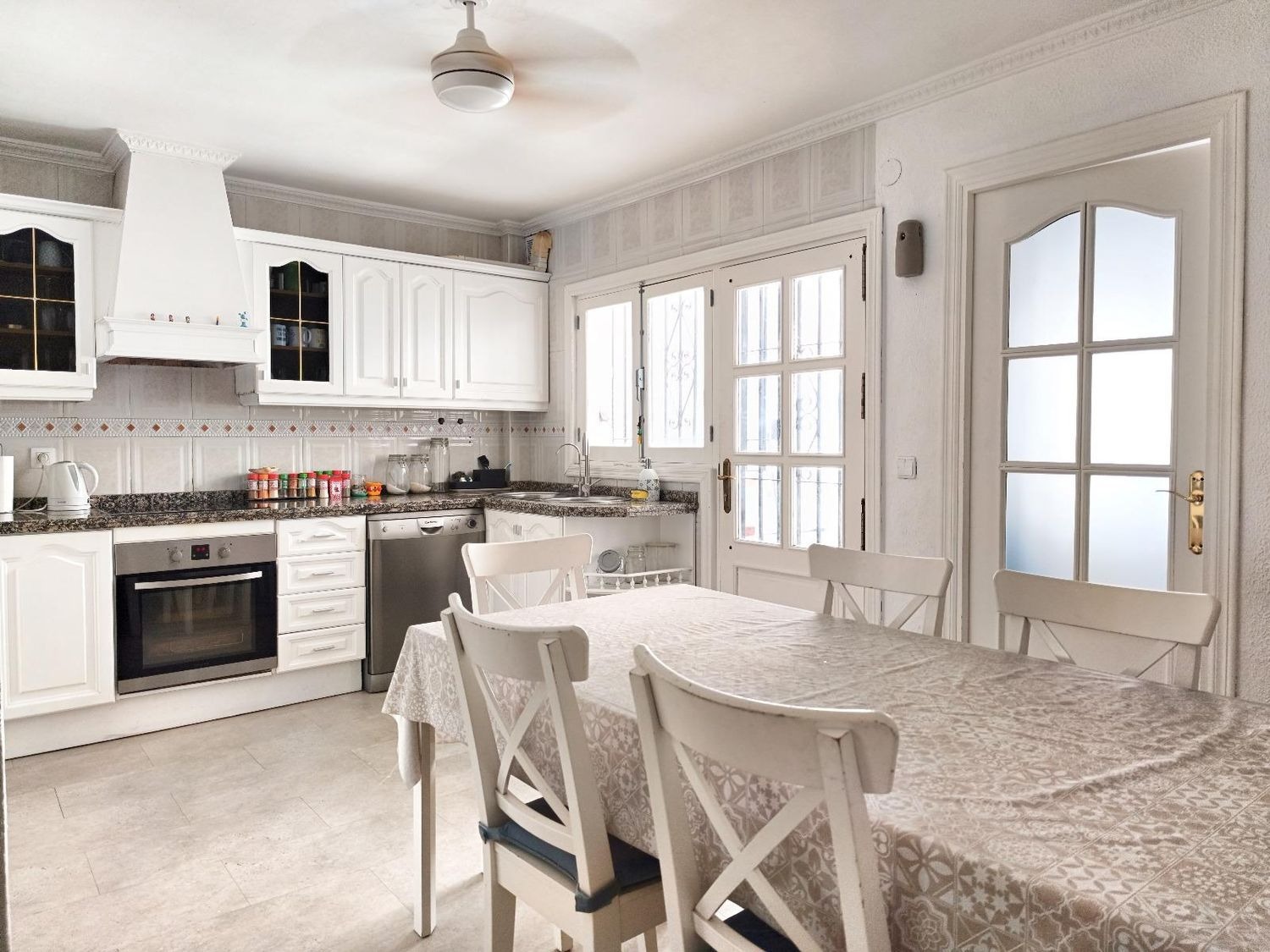 La cocina independiente es perfecta para aquellos que disfrutan cocinar, mientras que el acogedor comedor invita a compartir comidas y risas. Además, cuenta con dos patios que rodean la casa, donde podrás relajarte al aire libre y disfrutar del clima mediterráneo. Desde la planta superior, se pueden apreciar vistas parciales al mar, un detalle que añade un toque especial a este hogar.